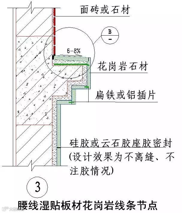 说明:当不采用企口缝时,石材板缝间需挤浆处理。