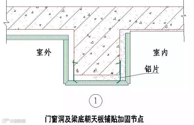 2)门窗洞及梁底朝天板应作铝片或扁铁侧面加固方案施工。