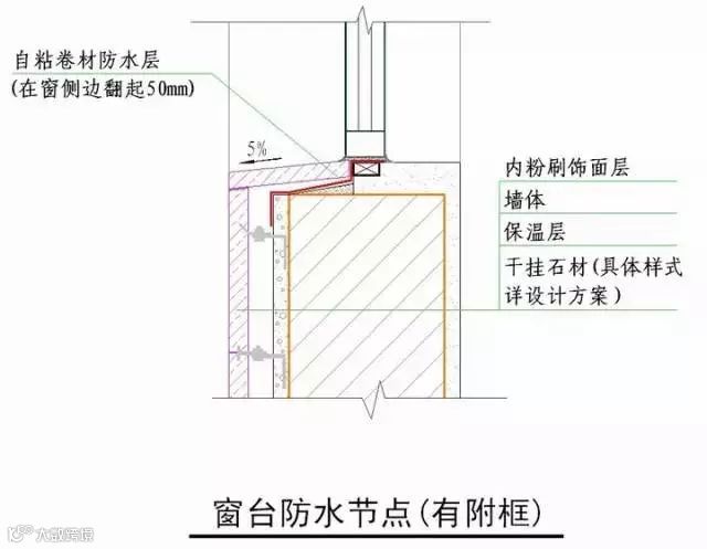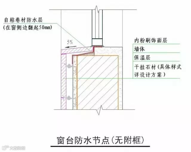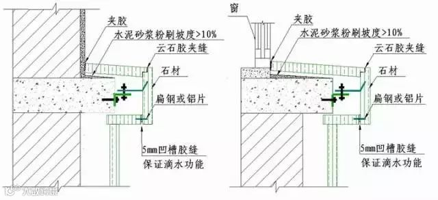 注:室外花岗岩窗台及线脚基层水泥砂浆粉刷坡度大于10%。