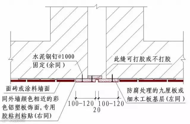3)石材墙面设计要求打明胶时,板缝开三角槽缝或开小凹槽施工。