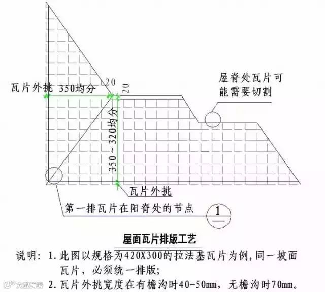 1)施工工序依次为:混凝土结构层-找平层-40X8顺水条-防水层-顺水条(嵌套保温板)-挂瓦条-顺瓦条-筒瓦。