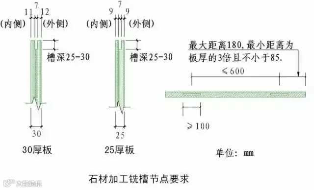 6)石材短槽必须机械开槽,保证槽缝宽度符合设计要求,严禁现场手提切割机开槽。