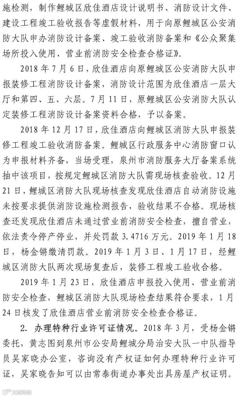 泉州市新星机电工贸公司、欣佳酒店实际控制人杨金锵以涉嫌重大责任事故罪、伪造国家机关证件罪于4月9日被逮捕;