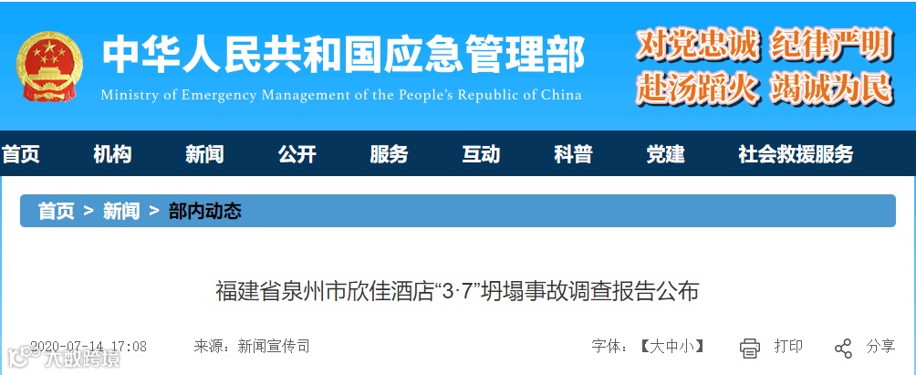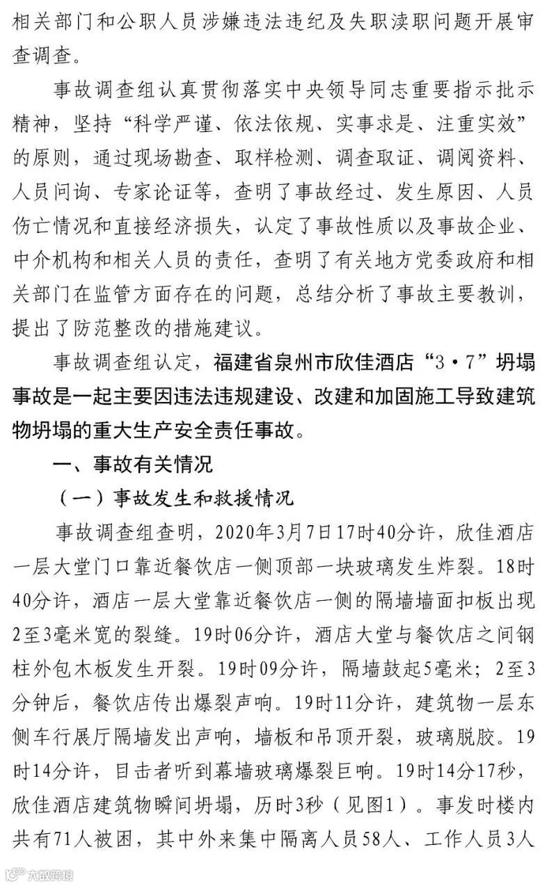 近日,国家应急管理部公布福建省泉州市欣佳酒店“3·7”坍塌事故调查报告全文。