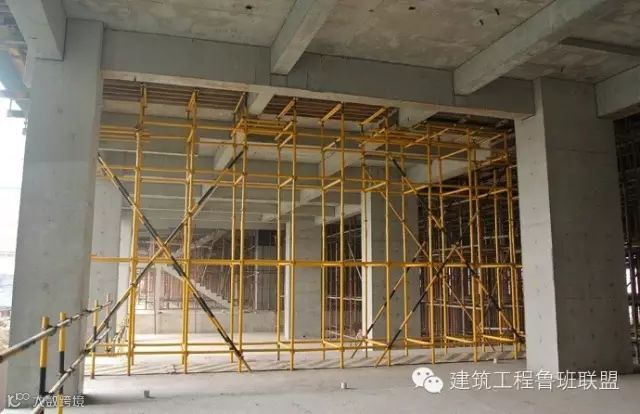 悬挑式脚手架悬挑过长采用定型化支架加固。