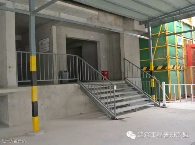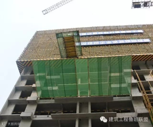 外架采用定尺折形钢板铺设,层间隔离采用定型化支架。