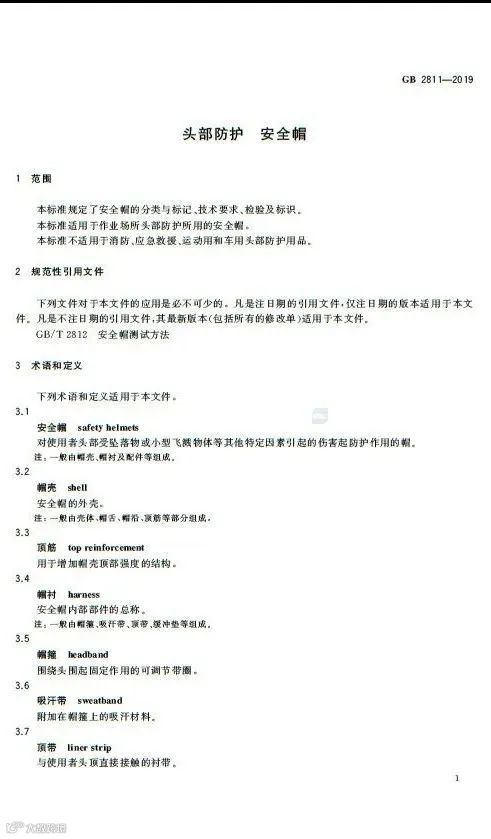 相比较于旧版GB2811-2007,新版安全帽标准GB2811-2019《头部防护 安全帽》做出了如下修改: