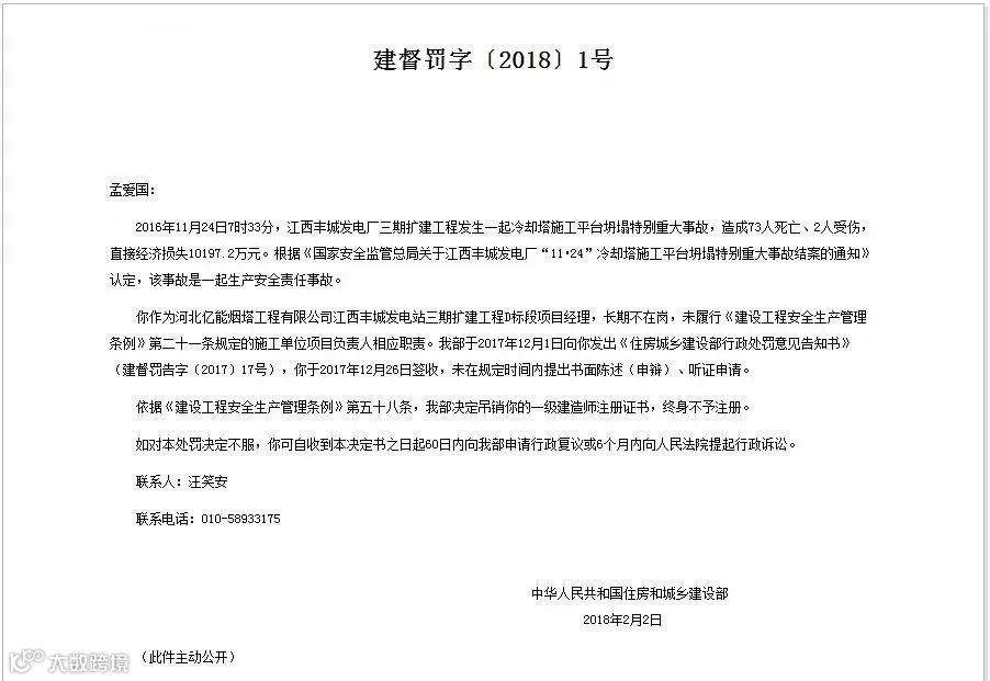 结论:挂靠项目经理孟爱国被吊销执业证书,终身不予注册!