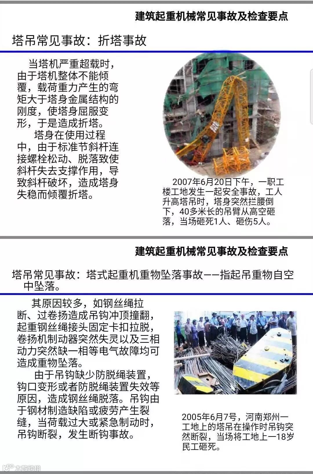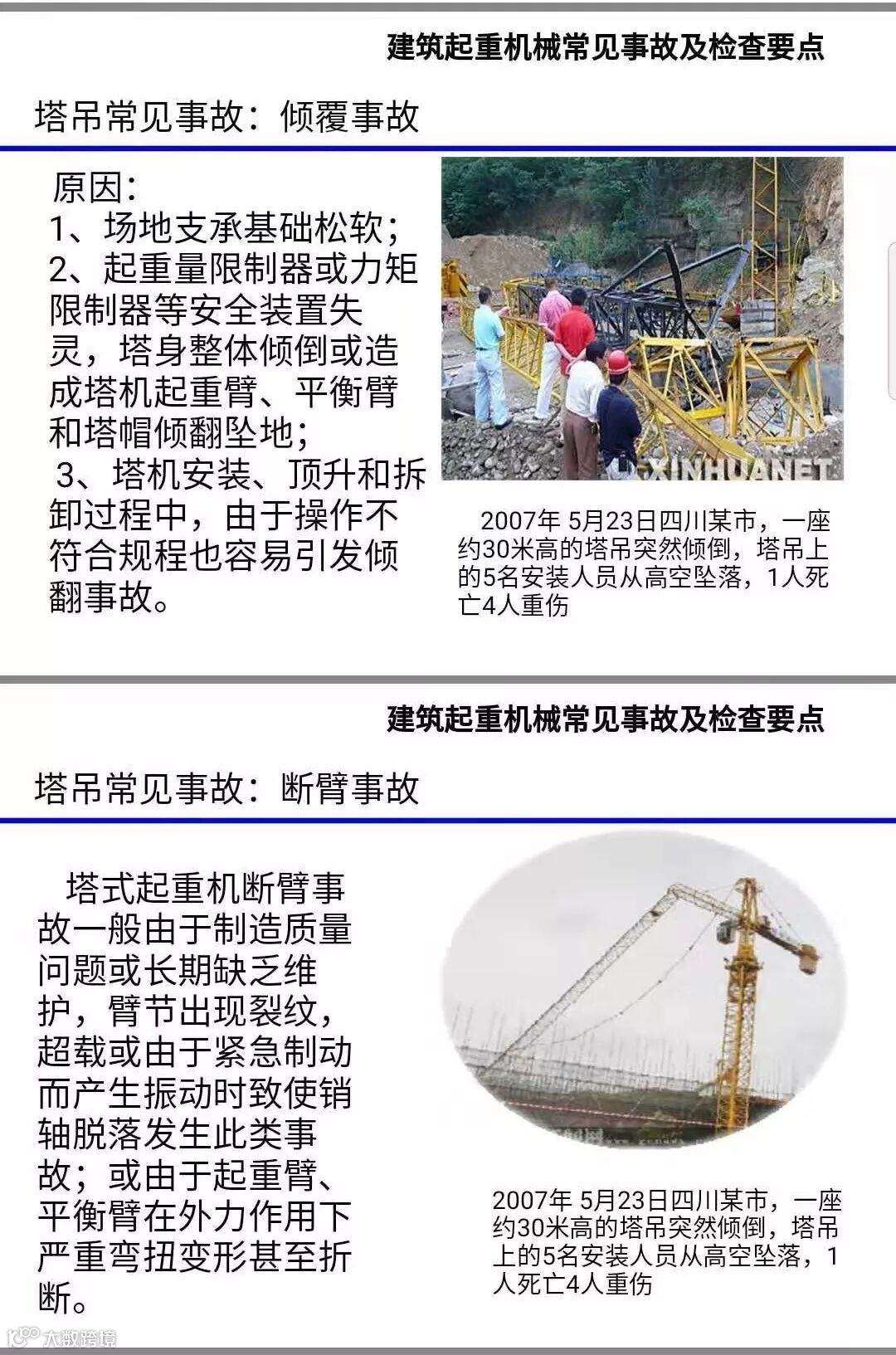 6.准确评估塔吊寿命。现在良多省份对某些厂家出产的塔吊已强行严禁使用,但对塔吊的使用年限未有同一报废尺度,建议相关部分制定出塔吊报废尺度,到了年限果断报废。