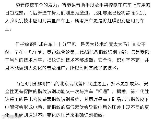 指纹识别只是第四代胜达智能化升级的一个缩影
