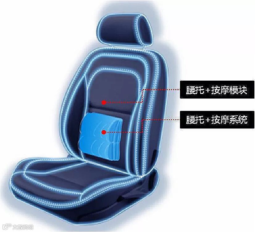 整椅轻量化主要通过电子元件系统模块化、集成化,使用EPP发泡材料等技术手段实现。腰托和按摩系统传统的设计方案是腰托系统和按摩系统分别通过不同的模块进行控制,众泰目前已升级为腰托和按摩系统模块化设计,即通过阀组执行器和电子控制系统集成为一个模块,取消阀组和驱动之间的连接线束,不仅提高了连接的可靠性,也减轻了不少重量。众泰T700座椅腰托和按摩系统为通过一个模块控制。