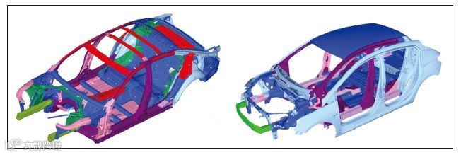 (3)可加工硬化率比普通钢板高,可以吸收更多的冲击能量,适合用于底架的前后纵梁等处和要求高强度、耐久性部位。高强度钢板在车身中的比例不断提升,与碰撞相关的关键的车身骨架构件全部采用超高强度钢板,加强了车身整体的强度及抗撞性,提高了车身的安全性能。