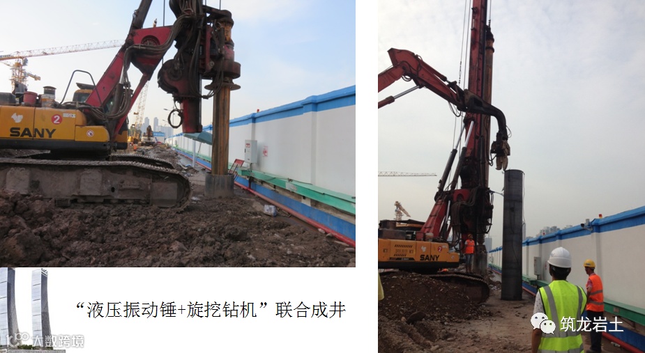 2、降水井采用“液压振动锤+旋挖钻机”联合成井工艺,避免泥浆护壁对滤水通道的堵塞。