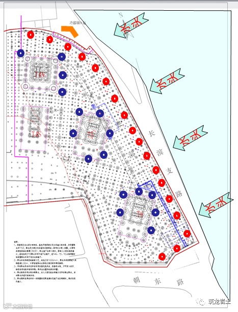 长滨路靠近长江,在长滨路沿线以及T6靠朝东路侧每隔8-12m左右设置降水井,形成抽水帷幕。共成井32口帷幕井。