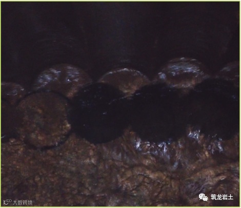 液压注浆止水帷幕咬合点砂卵石层未形成固结体,砂卵石为松散状态。