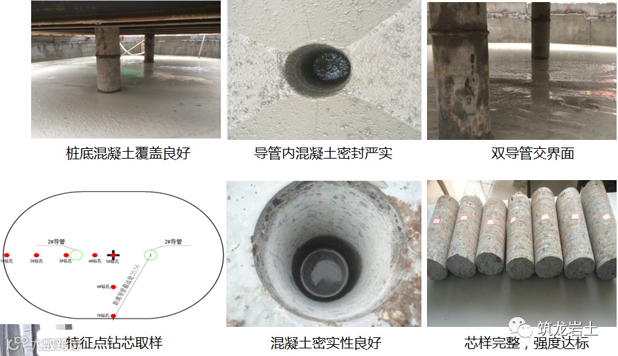 采用声波透射法和混凝土钻芯取样两种方式对桩身完整性进行检验,钻芯取样增加桩底扩大头范围内桩身完整性及混凝土强度的检验。
