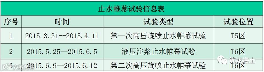 项目部进场后,根据设计顾问及业主要求,前后共进行三次止水帷幕试验,验证止水帷幕的地下水治理有效性。