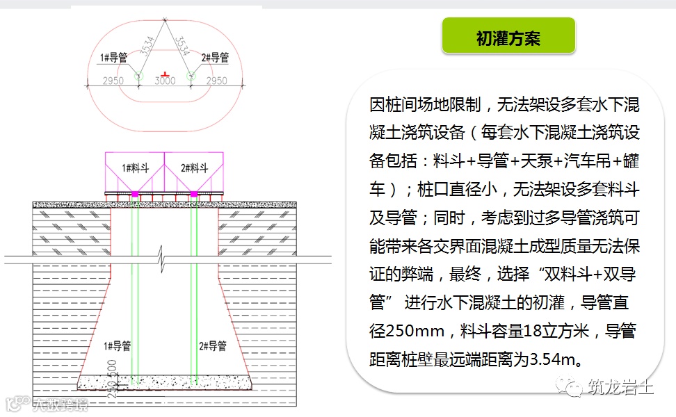 此外,采用常规水下混凝土及单导管送料方式,混凝土性能无法保证初灌混凝土在短