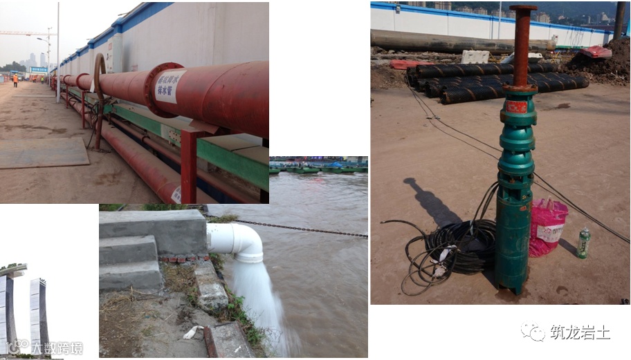 3、根据地下水水量及降深要求,选用32t/h、50t/h、80t/h三种高强潜水泵抽排至长江。