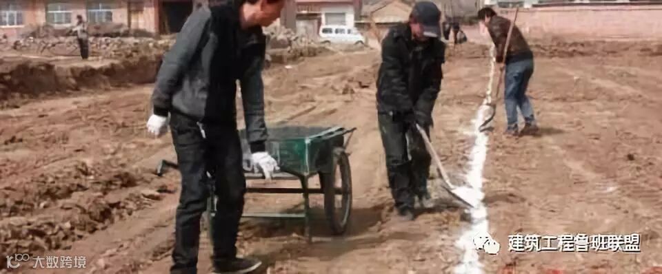 2、在控制桩完成后,用白石灰洒出管网线路及其配合性构筑物(如混凝土井室)位置,确定土方开挖线及开挖位置。
