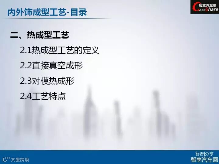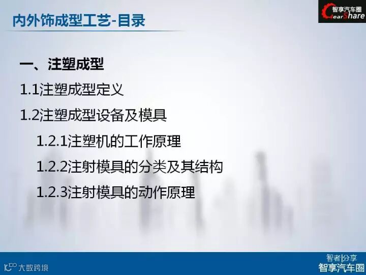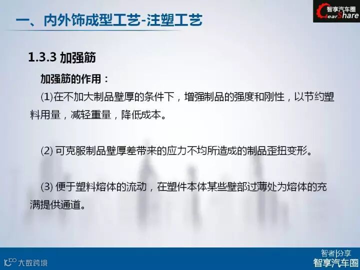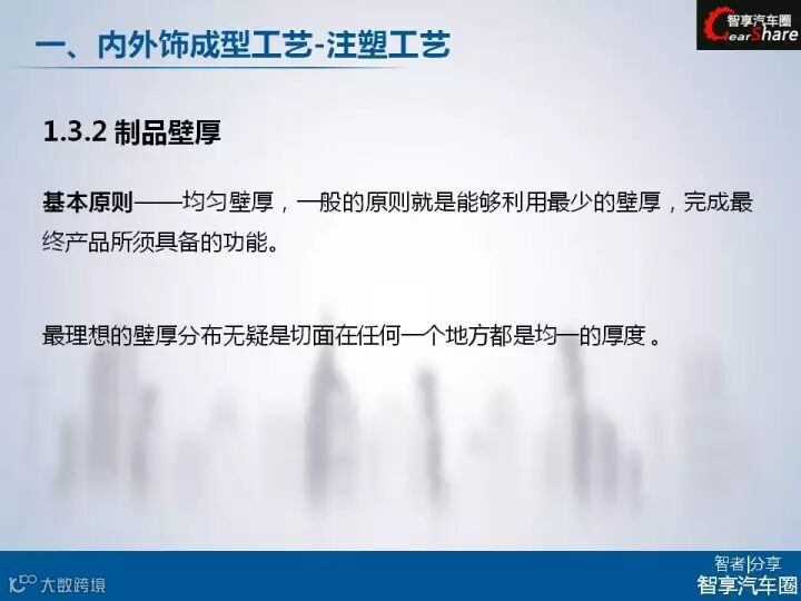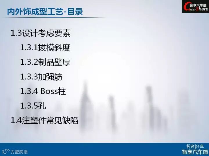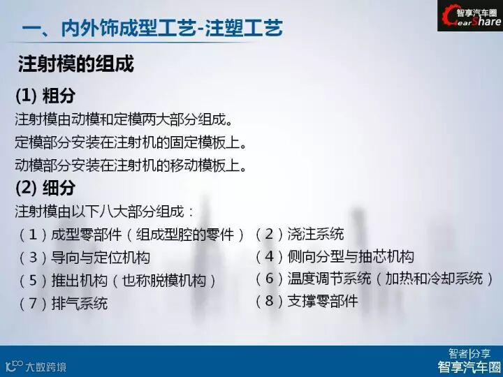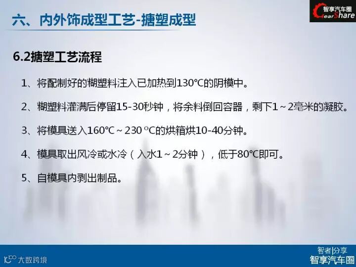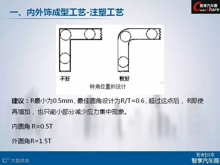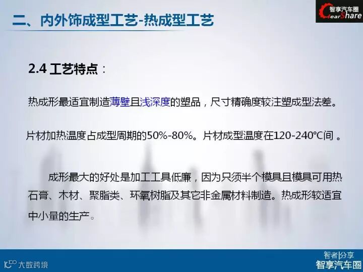 本文用68页PPT,结合多年内外饰从业经验,阐述注塑成型、热成型、中空成型、发泡成型、模压成型、搪塑成型、挤出成型等7大工艺的设计要点及关键参数,希望与相关同行们一起探讨,学习,提高!