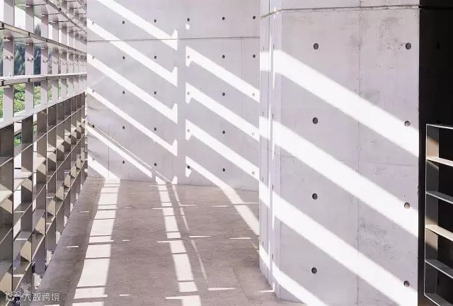 清水混凝土天窗的光影变化给地下的国际会议厅穿廊带来独特的空间感受。清水混凝土建筑在设计上有很多需要注意的细节。台湾多雨潮湿的气候使清水混凝土墙面容易遭到污染,在窗台板上加避水板可以改善这一情况。明缝、螺栓的孔眼使清水混凝土在建筑中得以突显。