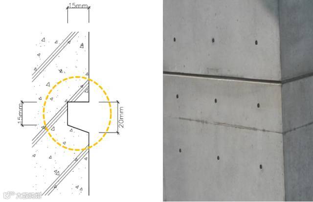 保留“施工痕迹”,是一种重要的清水混凝土立面设计手法:通过明缝(凹入混凝土表面的分隔线或装饰线)、蝉缝(模板拼缝在混凝土表面留下的痕迹)和对拉螺栓孔眼在混凝土表面形成有规律的图案。