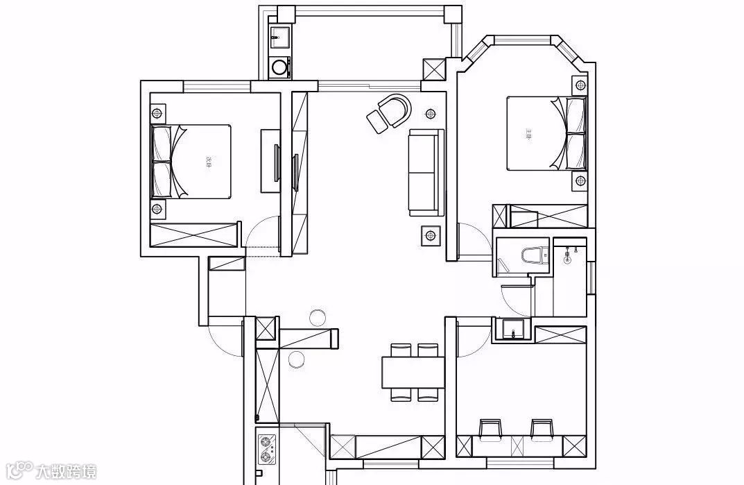 120平的房子只有一个卫生间,为了提高使用效率,马桶间、淋浴间和洗脸台做了分离。上图左、中、右分别是马桶间、淋浴间和洗脸台。