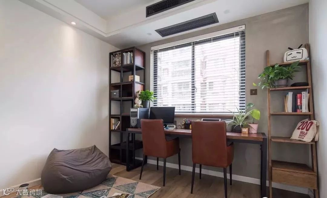 书房延续了客厅的风格,依然以简洁为主。由于书房的面积比较小,我们又想扩出一个可以休闲的区域,所以书桌选的是比较小的那种,书架也是怎么简单怎么来,好在最后效果满意。