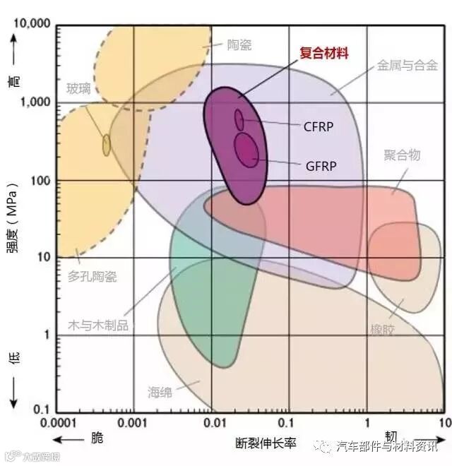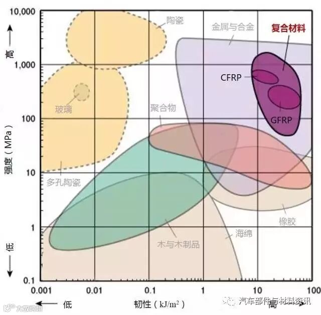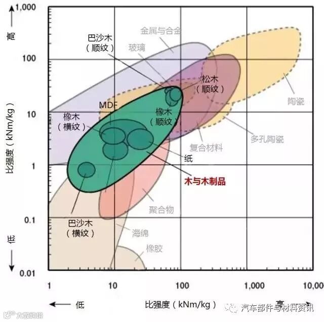 2、高强度且低密度的材料位于图形的左上部分。
