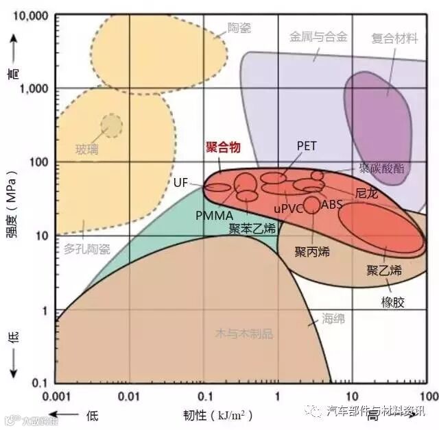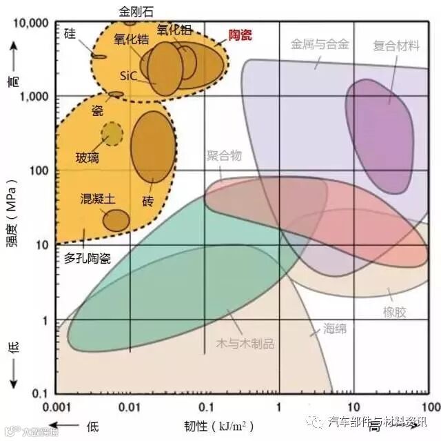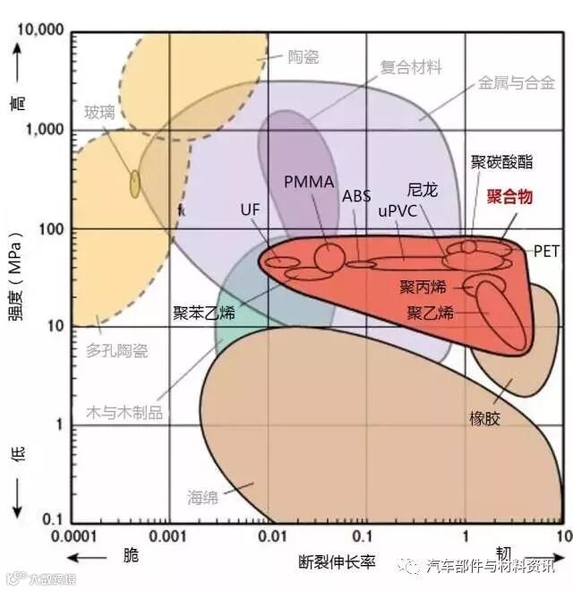 1、下图标识的强度为拉伸强度,除了陶瓷为抗压强度。