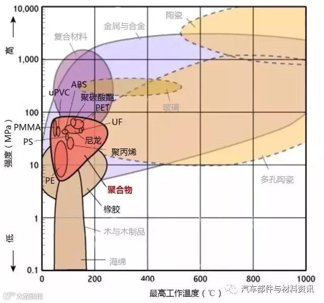 2、聚合物的最高工作温度较低,金属的最高工作温度居中,陶瓷能够承受非常高的温度。热塑性聚合物的最高工作温度低于热固性聚合物。