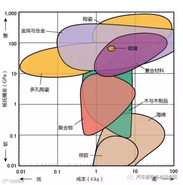 3、需要廉价且坚硬的材料,则选择图表左上方的材料,大多为金属和陶瓷。