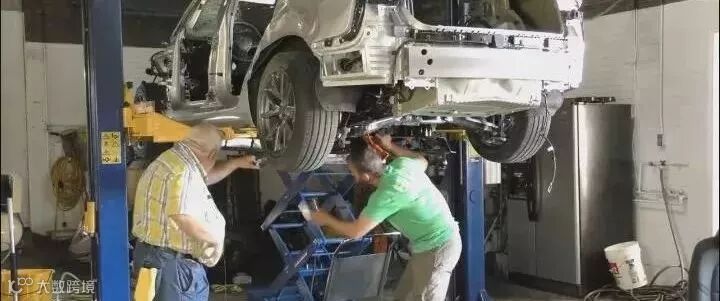 👆将车子在台架上抬起来