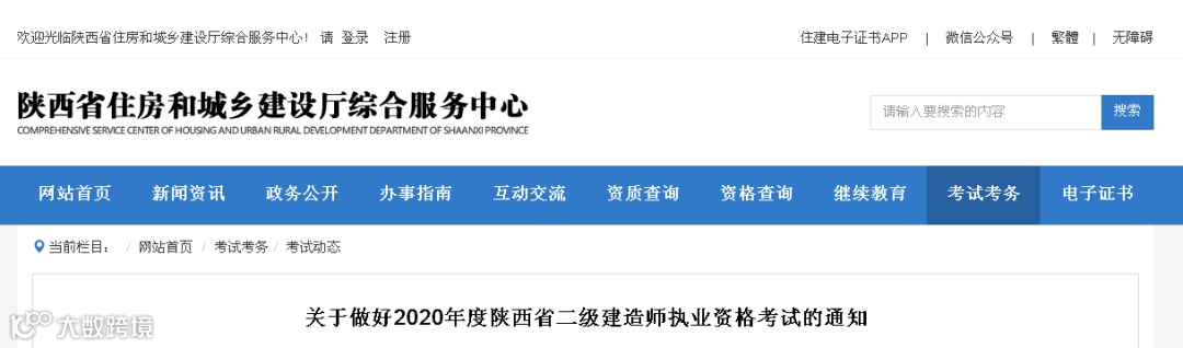 参加考试人员请在规定时间内,登陆陕西省住房和城乡建设厅综合服务中心网站,进入办事大厅-考试考务--考试报名系统进行报名。