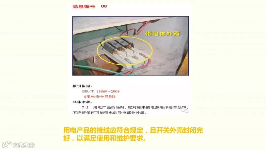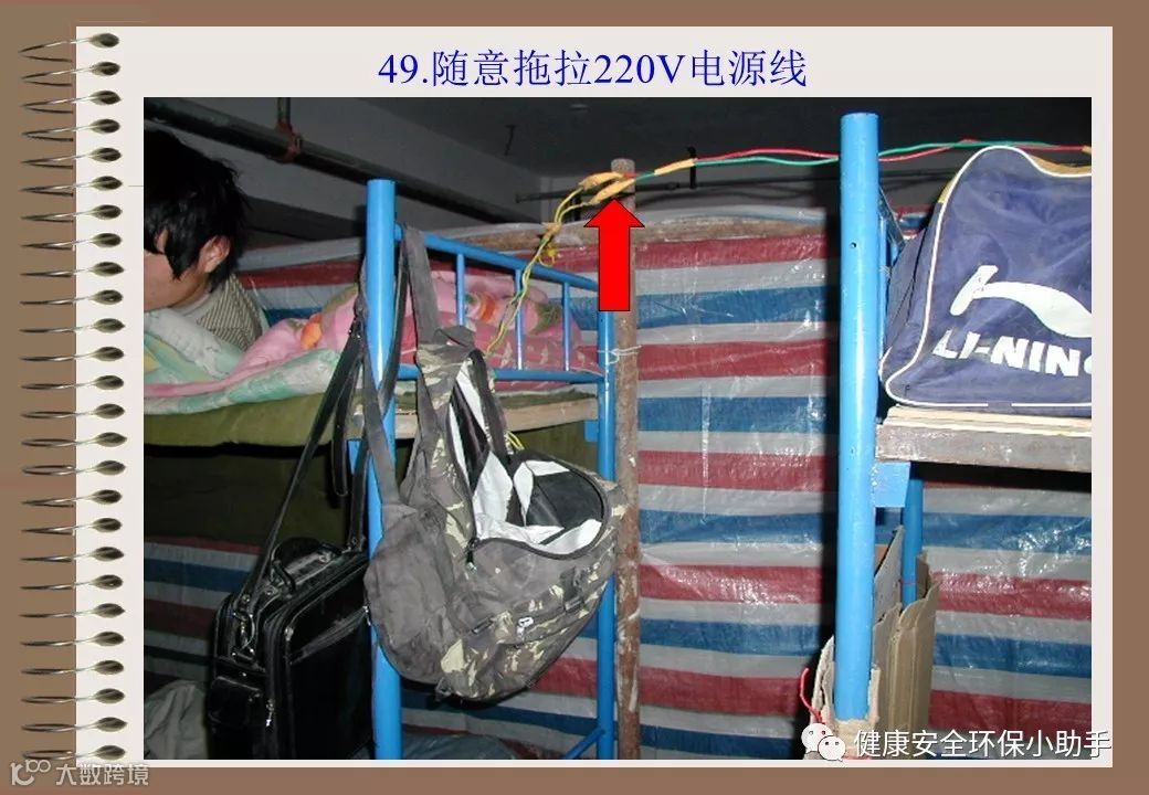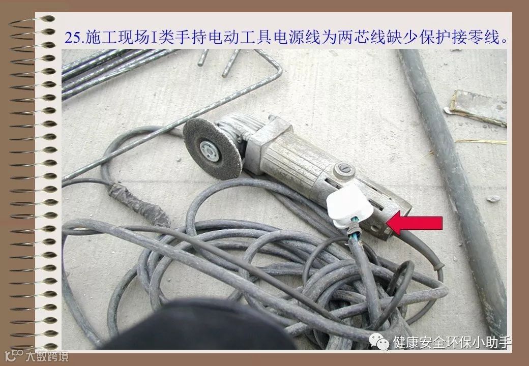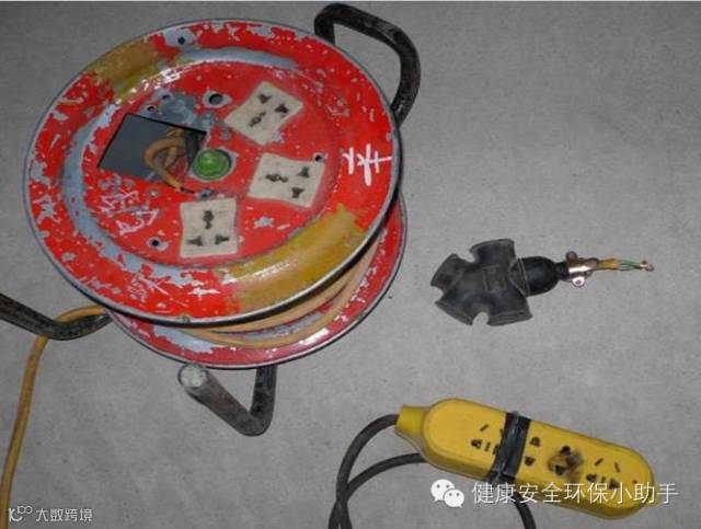 1、使用民用插盘2、插线盘缺少漏电保护器