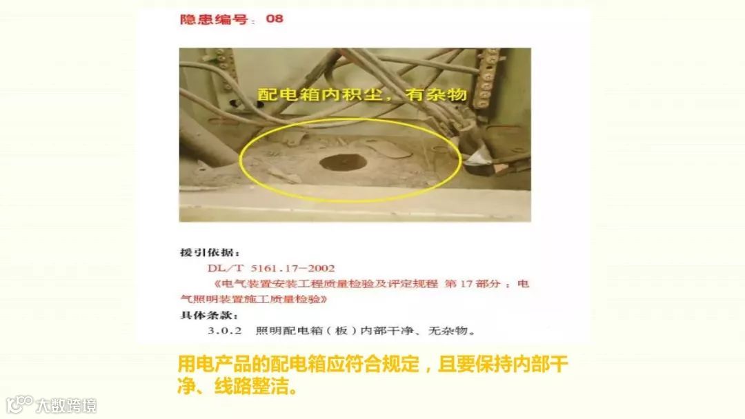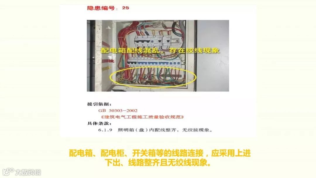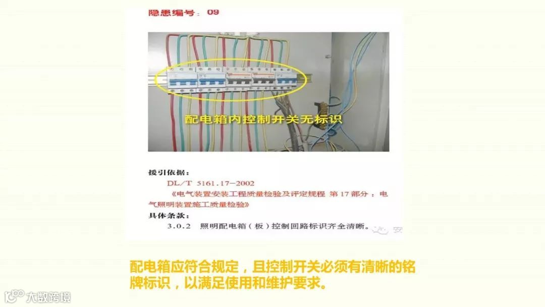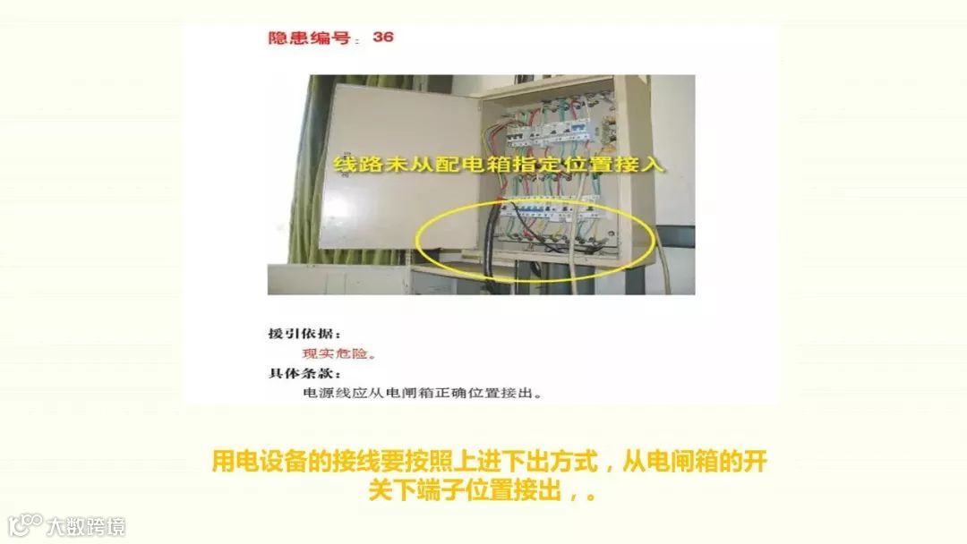 1、配电箱内主线混乱,有并联现象2、分闸一闸多接