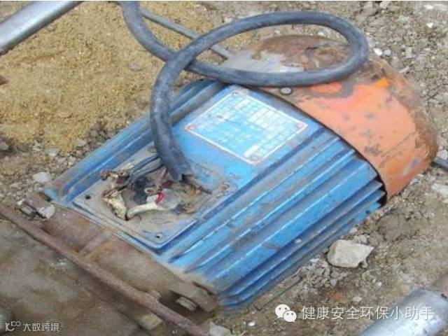 1、无防雨措施,缺少配电箱,直接放在地面2、不符合一机一闸一保护要求