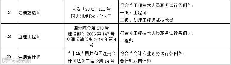 ★ 取得上述职业资格证书,可认定其具备相应系列和层级的职称,并可凭职业资格证书作为申报高一级职称的条件。
