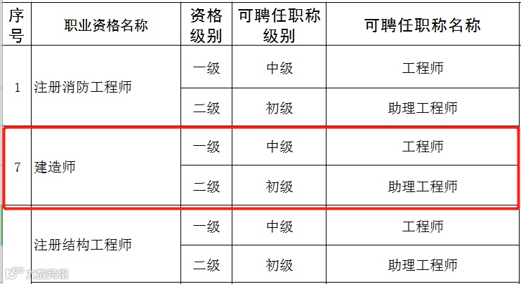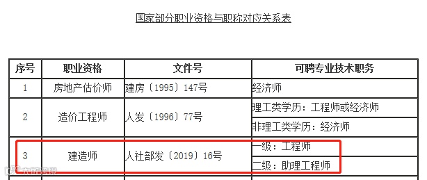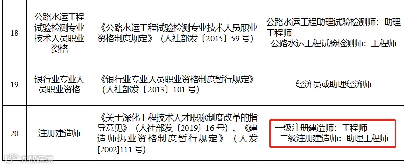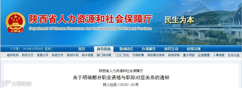 2019年4月,陕西省人社厅公布《关于明确部分职业资格与职称对应关系的通知》: