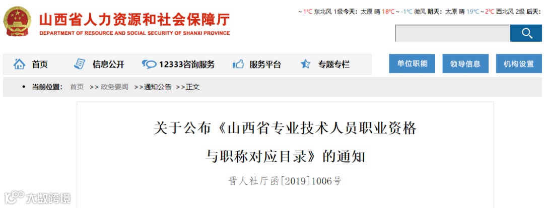 2019年8月,山西人社厅印发关于公布《山西省专业技术人员职业资格与职称对应目录》的通知,明确: