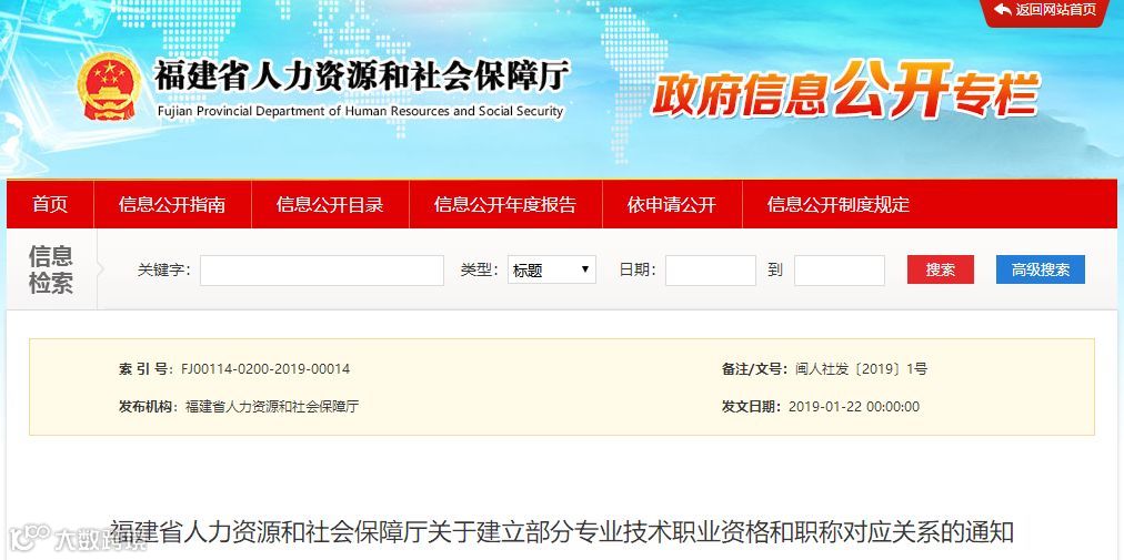 2019年1月,福建省人社厅印发《关于建立部分专业技术职业资格和职称对应关系的通知》: