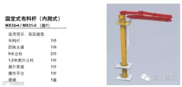 1)手动布料杆RV10,适用于楼面混凝土布料,工业厂房混凝土布料,需用塔吊移动,价格低,与拖泵配合使用。