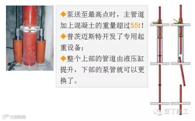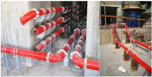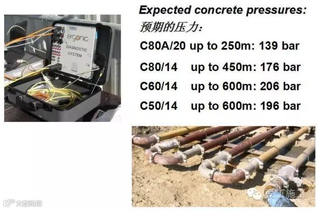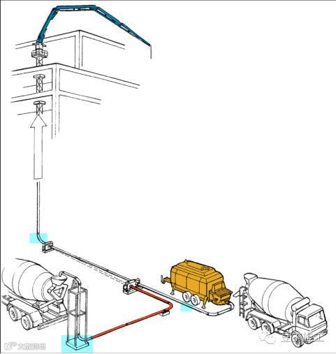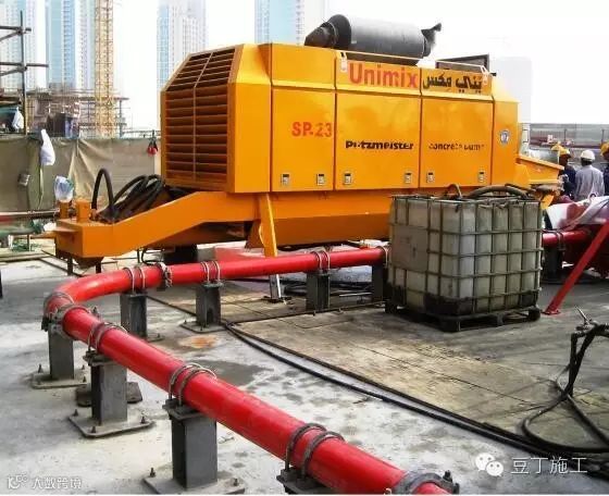 高压泵送配高压管,混凝土泵送困难时可换成大直径的输送管;