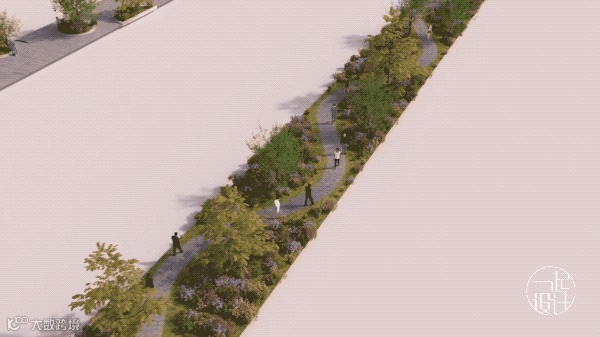 第三种:公园式的长廊设计,可以感受生活惬意的人行道▽
