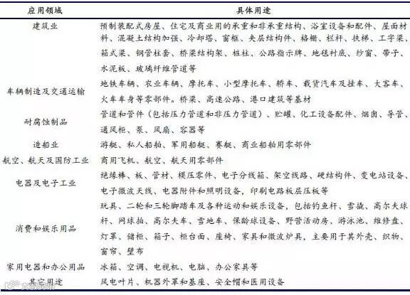 玻纤增强复合材料由于高强轻质、抗腐蚀、耐高温、电绝缘性能好等特点使得它还在航天航空、建筑、能源、电子等各个领域得到广泛的使用。