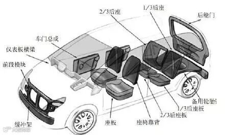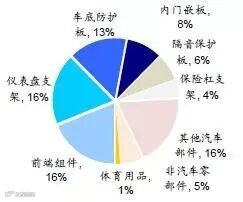 汽车行业使用的长玻纤增强塑料广泛应用于前端模块、底盘、隔音罩、仪表盘等零部件的生产制造。