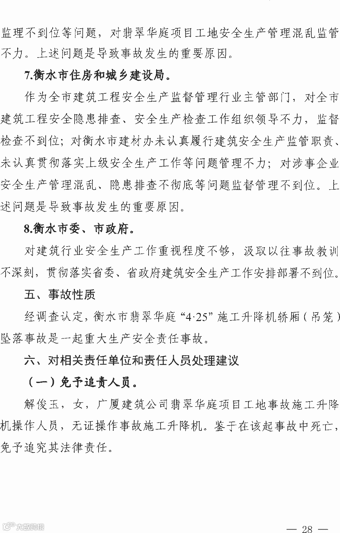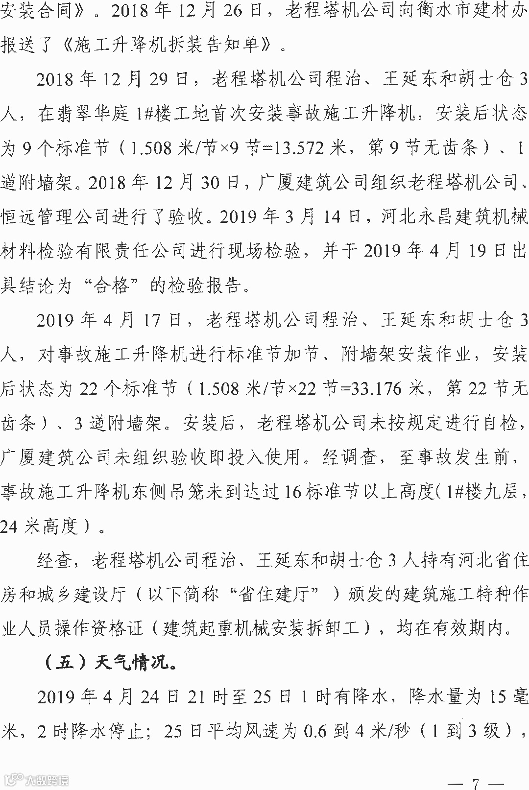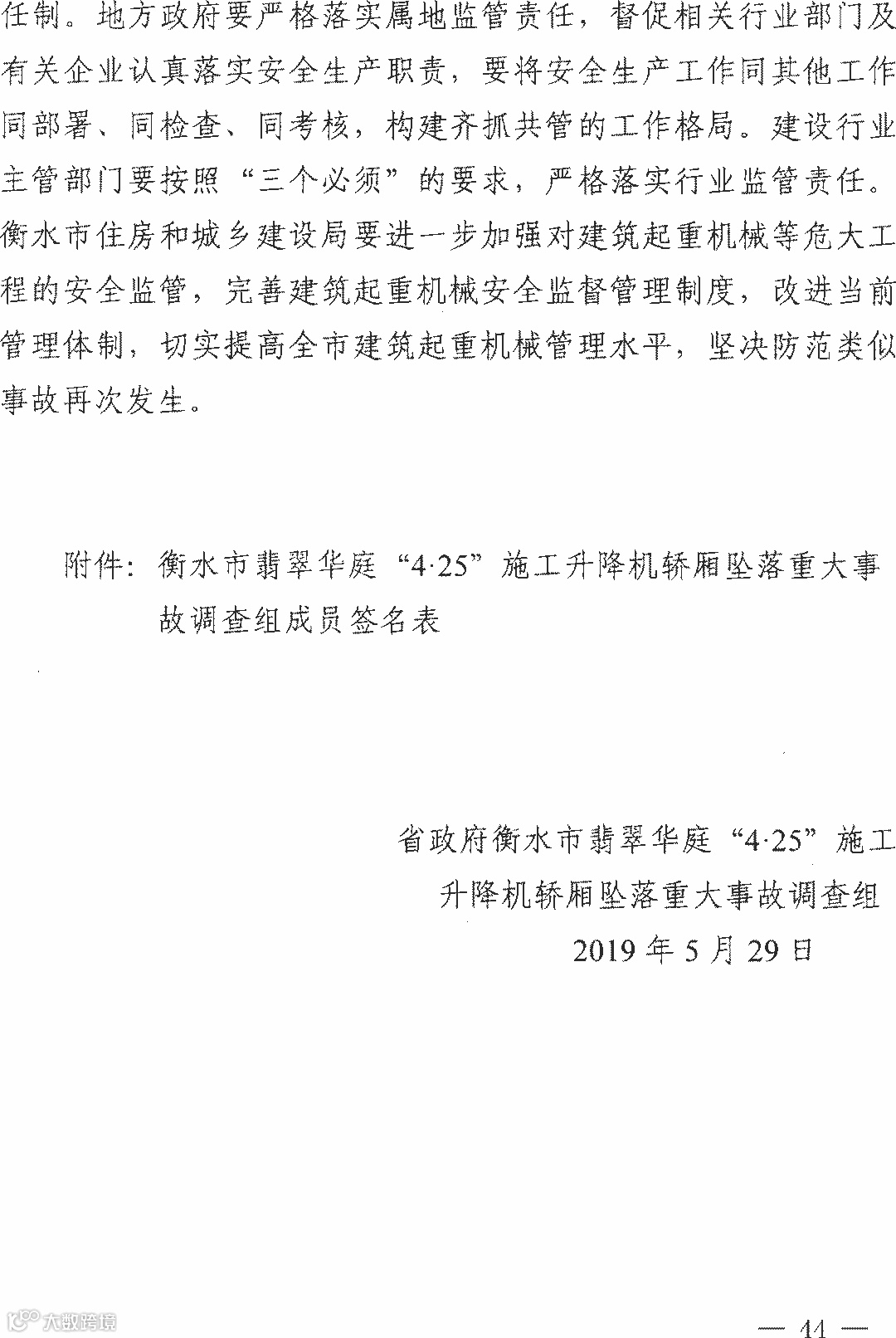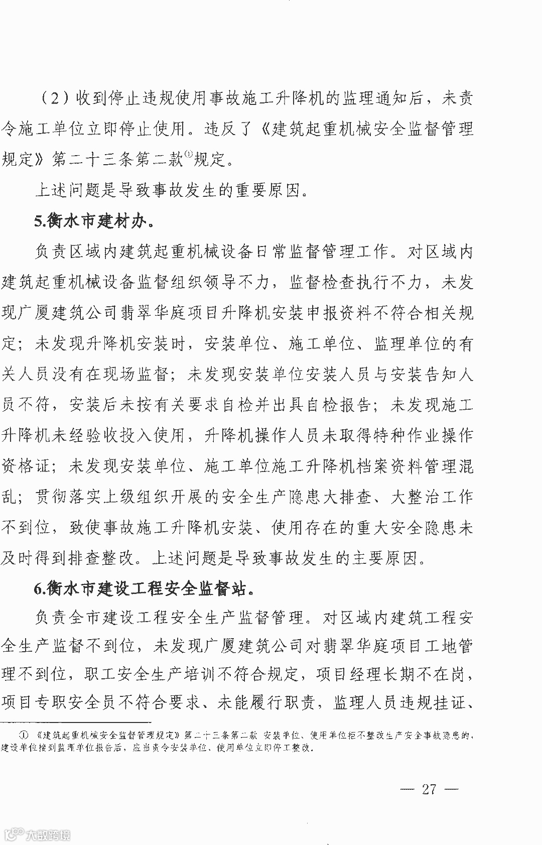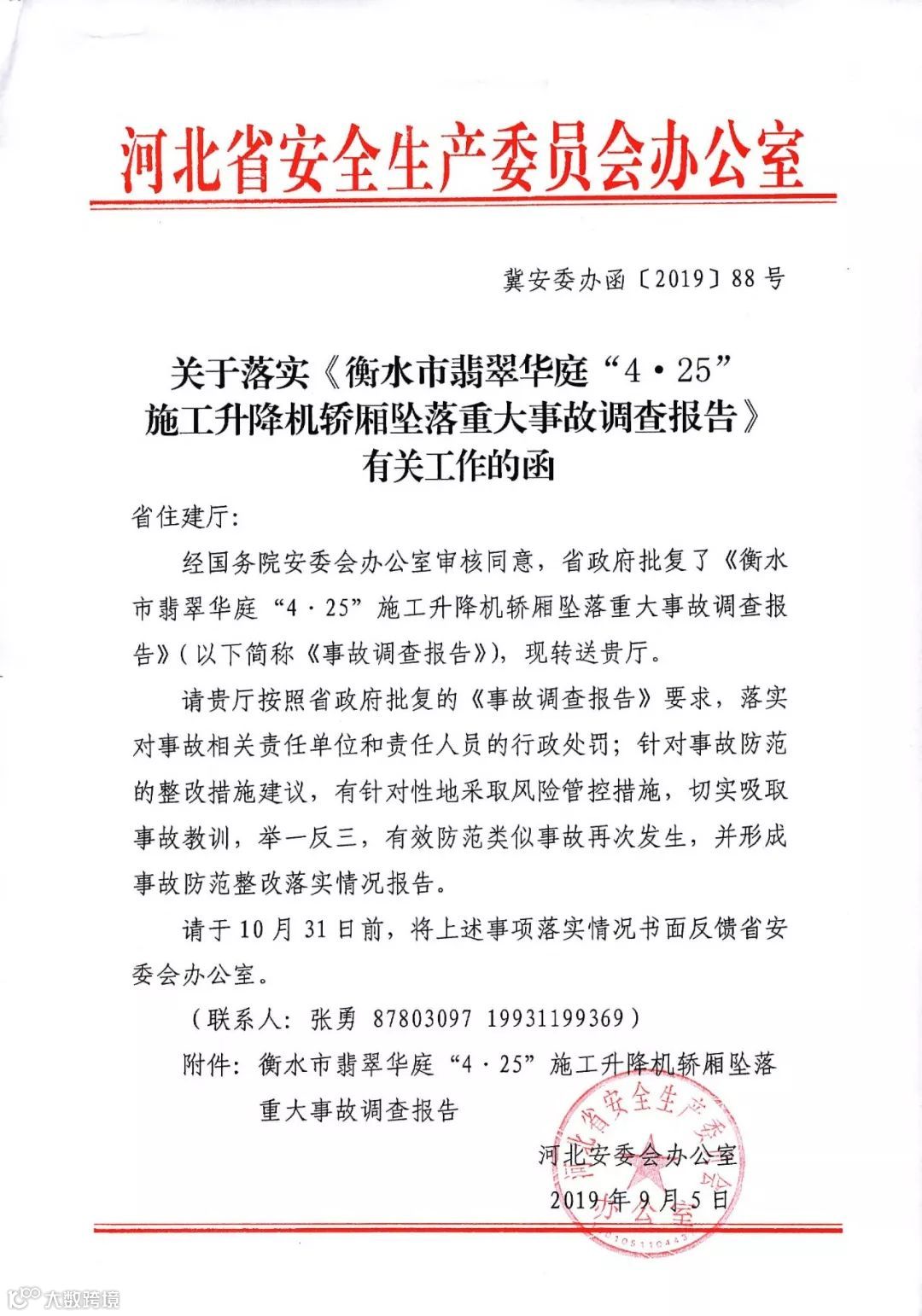 近日,河北省安委会发布《衡水市翡翠华庭“4.25”施工升降机轿厢坠落重大事故调查报告》。点击>>工程资料免费下载