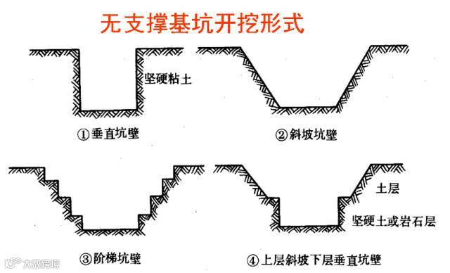 (2)在地下水位低于基底,或渗透量小,不影响坑壁的质量;