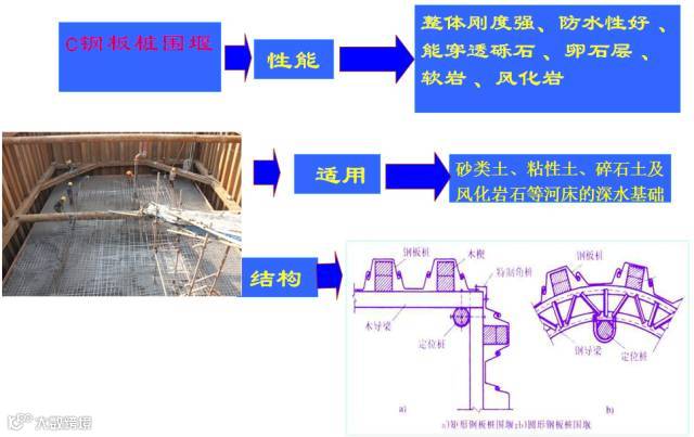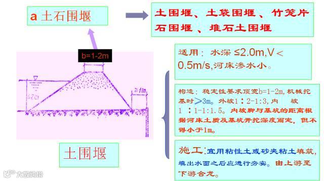 防水和围水,有时还起着支撑施工平台和基坑坑壁的作用。